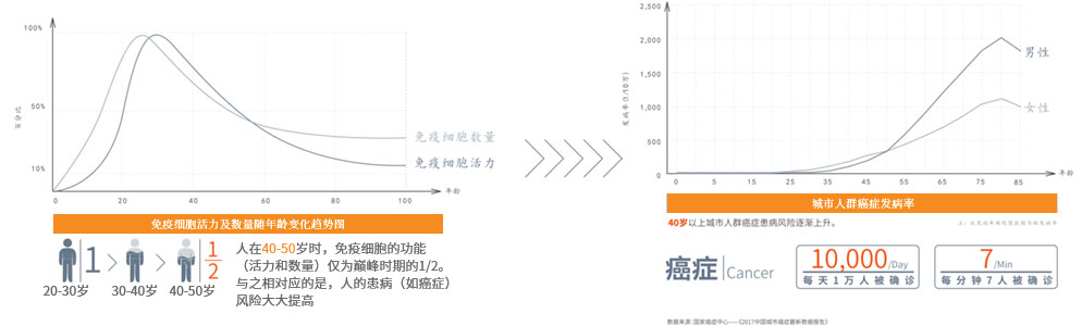免疫细胞的功能总是随着年龄的增加而不断减弱[2-3];这也是为什么,年龄越大,越容易患上癌症等恶性疾病;